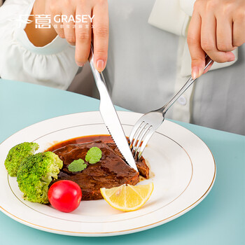 广意316L不锈钢牛排刀叉 西餐餐具 加长加厚 雅致两件套 GY7691