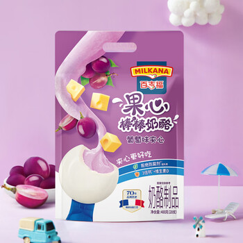 百吉福(MILKANA)全新上市棒棒奶酪儿童奶酪棒 果心葡萄夹心味 400g/袋