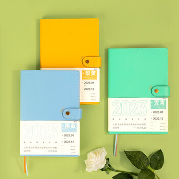 得力(deli)2023年日程本效率手册A5高颜值日程本todolist计划本日历记事本年历本笔记本本子 绿色BP102