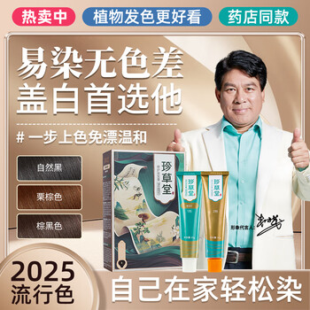 珍草堂棕黑色在家染发膏植物健康不伤发温和盖白贵妇级京东自营旗舰店