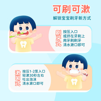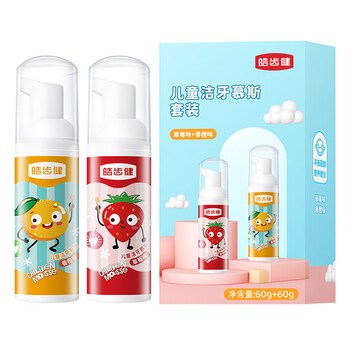 皓齿健1-12岁儿童宝宝益生菌可刷可漱洁牙慕斯泡泡套装草莓香橙味共120g