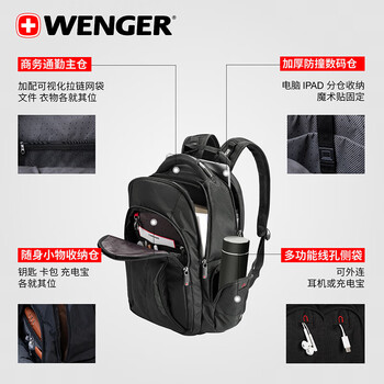 箱包皮具---功能箱包---电脑包威戈(WENGER)瑞士军刀威戈Wenger商务双肩包15.6英寸笔记本电脑超大容量防泼水BB1095.200761