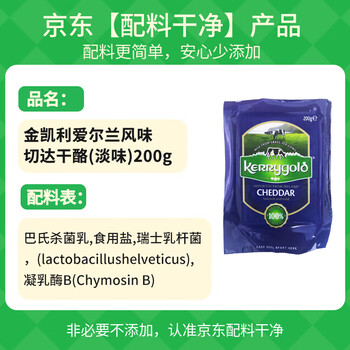 金凯利爱尔兰进口切达干酪 200g一包(淡味 干酪) 烘焙原料 早餐 面包