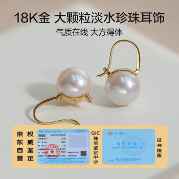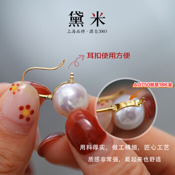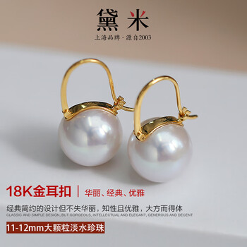 黛米18K金正圆11-12mm高品质淡水珍珠耳钉母亲节礼物送老婆爱人