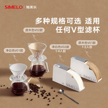 SIMELO咖啡滤纸滴漏式手冲咖啡过滤纸V01滤杯用滤纸原木色50只装1-2人份