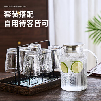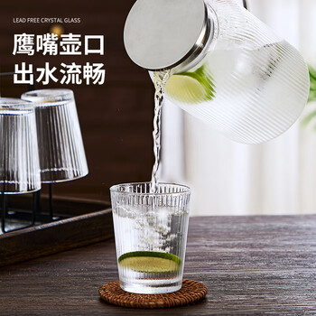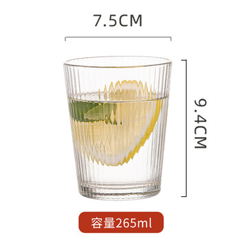 青苹果无铅玻璃水杯265ml6只装 竖纹漱口杯茶杯牛奶杯啤酒杯饮料杯