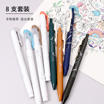 斑马牌(ZEBRA)JJ15复古限定中性笔组合套装 双头荧光笔 重点划线笔标记笔套装 生日礼物 SE-MM 8色套装
