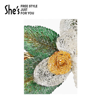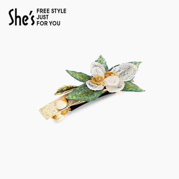 She's茜子发饰梵高玫瑰手工叠花横夹刺绣叶片马尾发夹生日礼物送女友