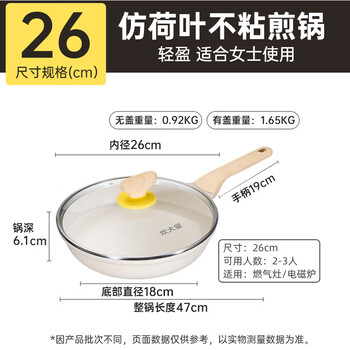 炊大皇聚油煎锅平底锅 麦饭石色不粘锅多功能易洁少油烟煎锅26cm