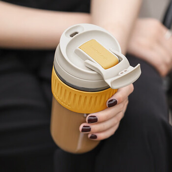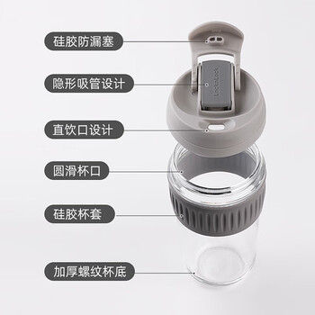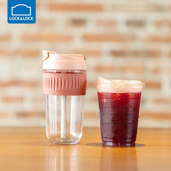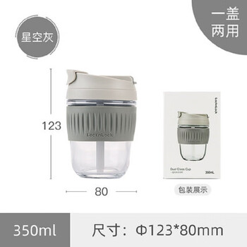 乐扣乐扣(LOCK&LOCK)咖啡杯手持玻璃杯男女学生便携式吸管杯子350ML灰色 LLG689GRY