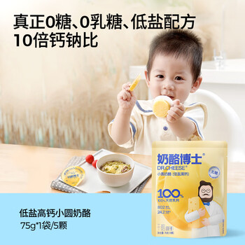 奶酪博士(Dr.Cheese)低盐高钙小圆奶酪75g 宝宝奶酪原制100%原生乳钙无糖送婴幼儿食谱