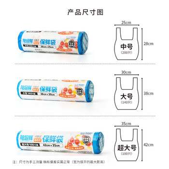 旭包鲜日本品牌一次性PE点断背心式保鲜袋易扎口易提 大号140只装塑料袋