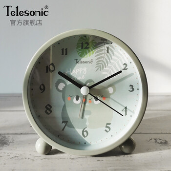天王星(Telesonic)闹钟 创意卡通简约小闹钟安静学生儿童卧室懒人床头钟 A1145-4灰色开学季