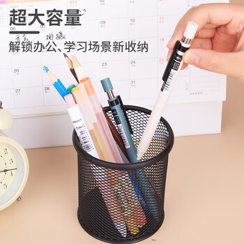优必利 办公笔筒 圆形网纹笔插办公用品文具简约冲孔笔桶 802A