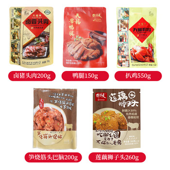 笋烧筋头巴脑 200g 自立袋卤猪头肉 200g 扒鸡 550g 莲藕狮子头 260g 鸭腿 150g