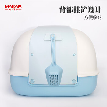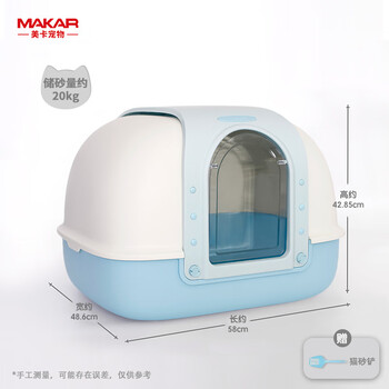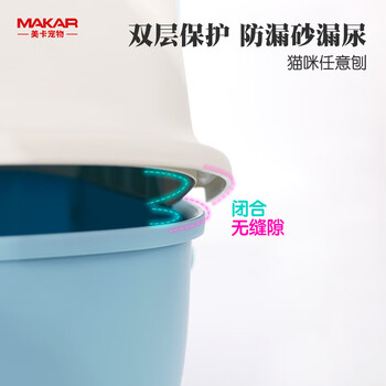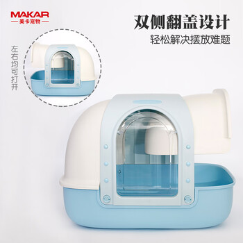 美卡时尚龙门客栈全封闭猫砂盆 特大号双翻盖猫厕所隔臭防外溅天蓝色