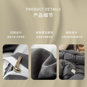 雅鹿·自由自在水洗棉被套单人150x200cm磨毛被罩单件1.5米床学生宿舍褥子套深灰
