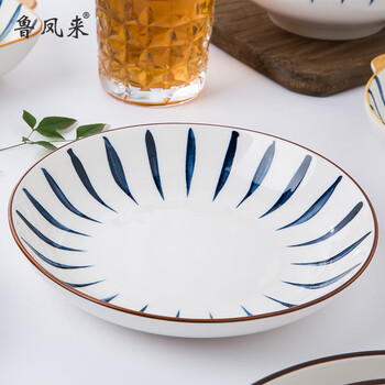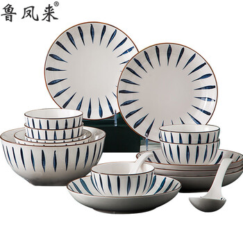 鲁凤来. 18头陶瓷餐具套装(6碗6勺6盘)日式兰草汤碗盘简约家用商务套装