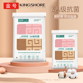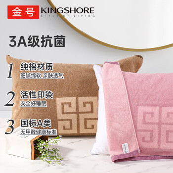 金号A类纯棉枕巾3A抗菌加厚提缎新疆长绒棉舒适枕头巾透气两条装紫+棕