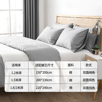 源生活 被套纯棉100%新疆棉全棉被罩被单单件 床上用品1.5米x2米浅灰色