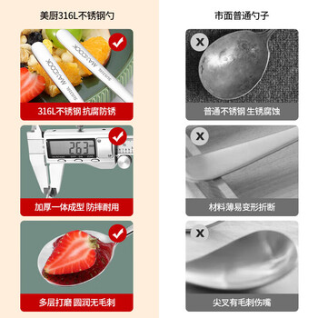 美厨(maxcook)316L不锈钢汤勺汤匙 加大加厚勺子圆底餐勺 2件套本色MCGC0200