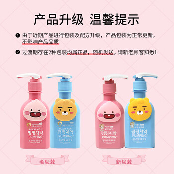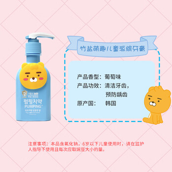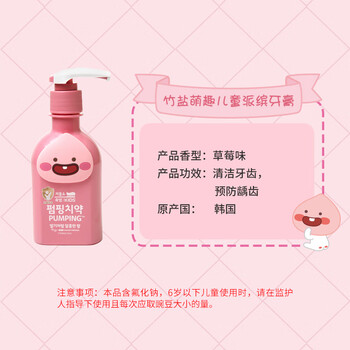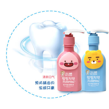 竹盐LG萌趣儿童派缤按压式牙膏2-12岁160g*2瓶葡萄味+草莓味低氟固齿