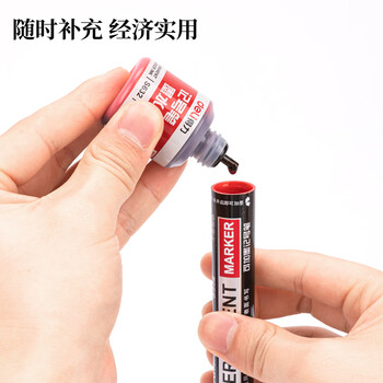 得力(deli)记号笔墨水S632红色单头大头油性笔不可擦墨水勾线笔添加水可加墨标记笔墨水12ml单瓶装
