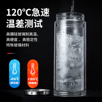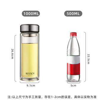 富光拾喜玻璃杯双层隔热茶杯商务男女士办公杯子大容量水杯1000ml本色
