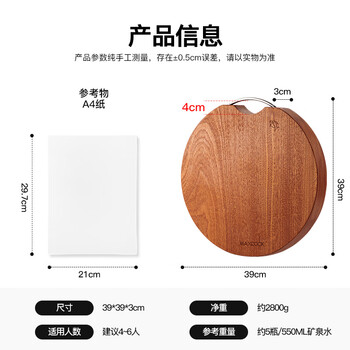 美厨(maxcook)乌檀木砧板切菜板 加厚加大圆形案板整实木剁肉墩家用防霉 39*3cm