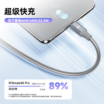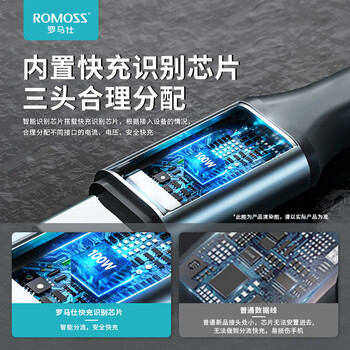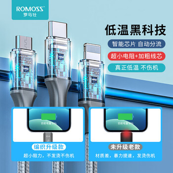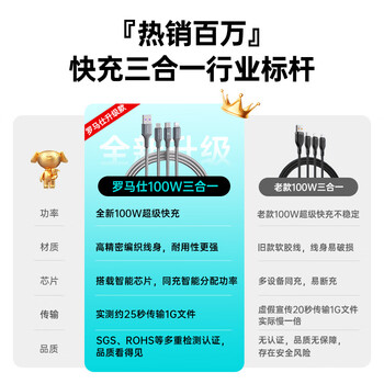 罗马仕数据线三合一6A快充100W/66W充电线适用于苹果iPhone14/Type-c安卓手机多功能一拖三小米华为车载