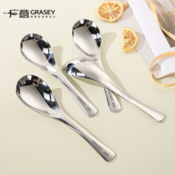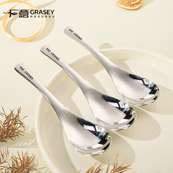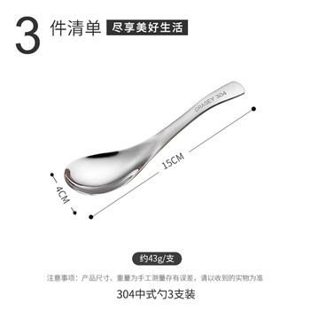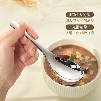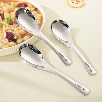 广意 304不锈钢勺子 汤勺汤匙调羹加大加厚圆底吃饭餐勺3支装GY7615