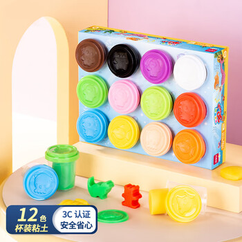得力(deli)儿童12色杯装彩泥非粘土橡皮泥非黏土男女孩DIY开学玩具套装67804