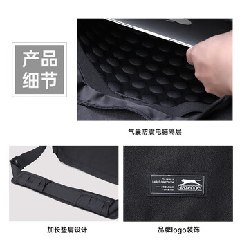 史莱辛格(Slazenger)单肩斜挎包男士手提公文包大容量笔记本电脑包14英寸适配华为苹果