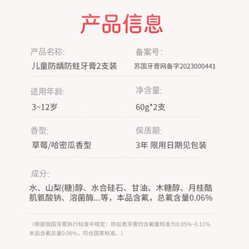 3-12岁儿童牙膏防龋防蛀草莓哈密瓜香型牙膏2支