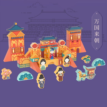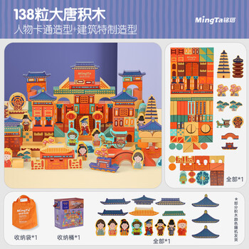 铭塔138粒大唐盛世积木中国风儿童玩具木制大颗粒男女孩生日礼物