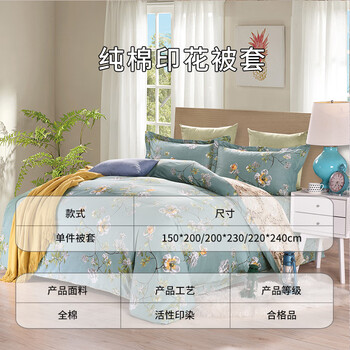 艾薇 被套单件纯棉被套田园风宿舍单全棉被罩单件 青馨花园 150*210cm
