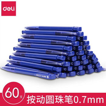 【开学必备】得力6506圆珠笔0.7mm子弹头(蓝) 60支/盒 邮储专享