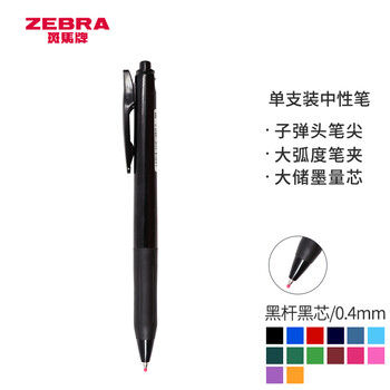 斑马牌(ZEBRA)0.4mm按动子弹头中性笔 彩色学生绘画签字笔标注填色手账笔水笔 JJS29-R1 黑杆黑芯 单支装