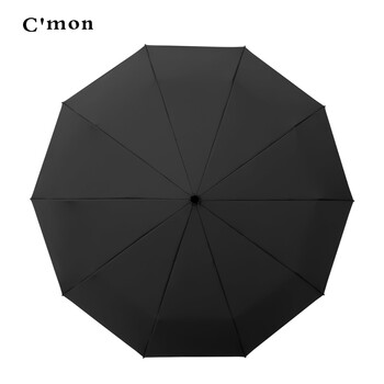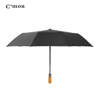 C'mon全自动晴雨伞三折大号防晒晴雨两用男曜石黑 10骨金圈木柄自动伞