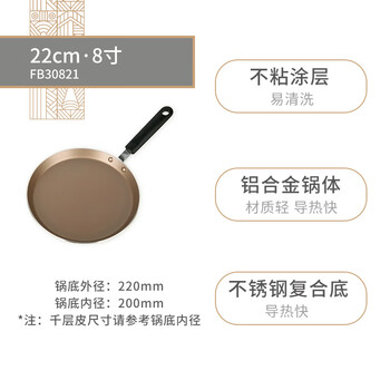 法焙客平底锅不粘锅 千层班戟可丽饼煎饼锅 圆形早餐锅蛋卷锅 22CM