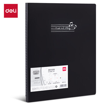 得力(deli)A4/15张30页乐谱夹 可书写资料册琴谱夹钢琴文件资料册 学生吉他古筝五线谱夹配件不反光 72585黑