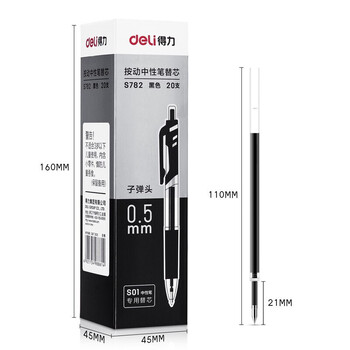 得力S782按动中性笔替芯0.5mm子弹头(黑) 20支/盒