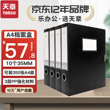 天章 (TANGO)档案盒文件盒资料盒黑色35MM*10个装财务凭证收纳盒A4塑料PP粘扣人事办公室文件管理文具用品