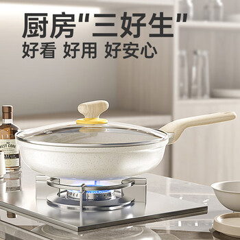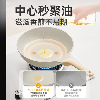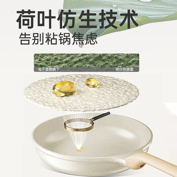 炊大皇煎锅平底锅 聚油不凸底麦饭石色不粘锅多功能易洁少油烟煎锅24cm