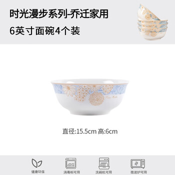浩雅景德镇陶瓷米饭碗面碗大容量汤碗高颜值家用 时光漫步6英寸4只装