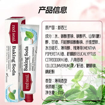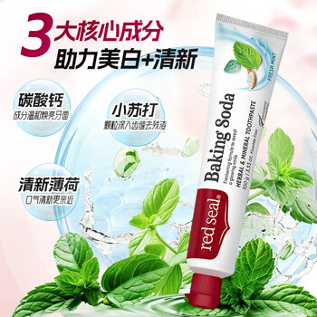 红印(Red seal)小苏打牙膏100g+牙刷套装 健康无氟清新口气淡化牙渍防蛀