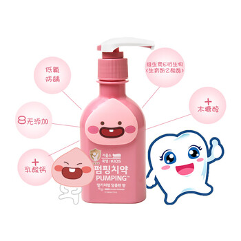 竹盐LG萌趣儿童派缤按压式牙膏2-12岁160g*1瓶草莓味低氟固齿热门商品