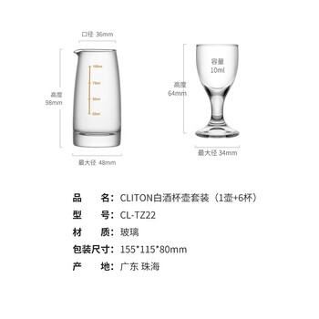 CLITON白酒杯分酒器100ml酒具套装茅台一口小酒杯刻度分酒壶酒盅1壶6杯