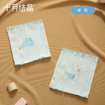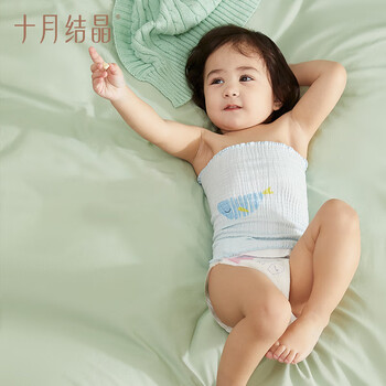 十月结晶婴儿肚围单层印花护肚护脐带棉肚围新生儿0-6月 蓝色2条17*17