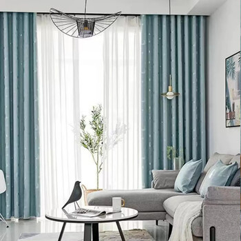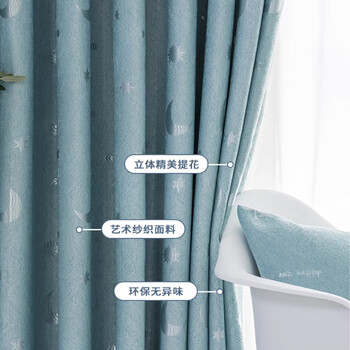 阿黎 客厅卧室遮光窗帘提花钻石麻星月蓝色挂钩式2.0米宽*2.2米高单片